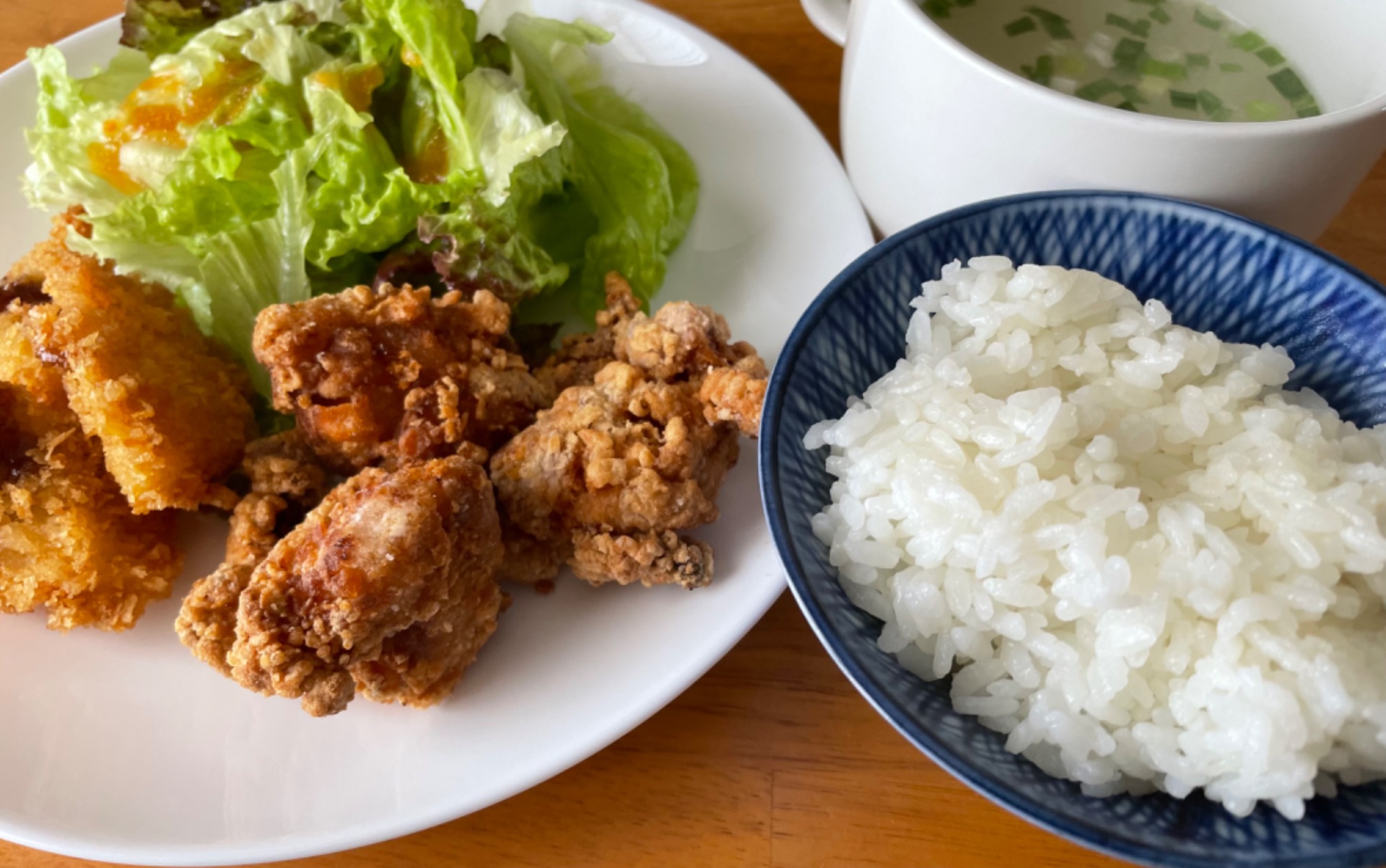 一般的なタラのフライとから揚げ。Fish fry and fried chicken.cooked by own hands.