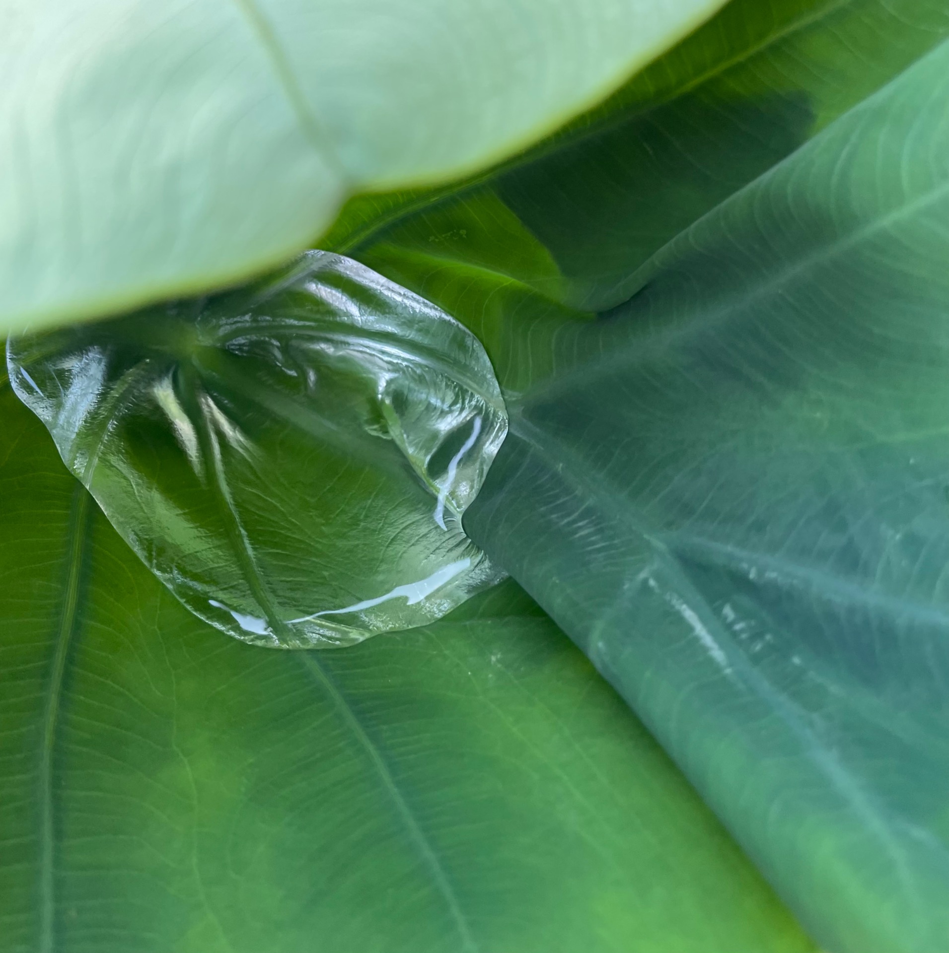 畑のタロイモの葉がものすごい撥水効果、ガラコだ…( ゚Д゚)